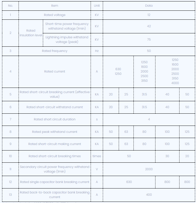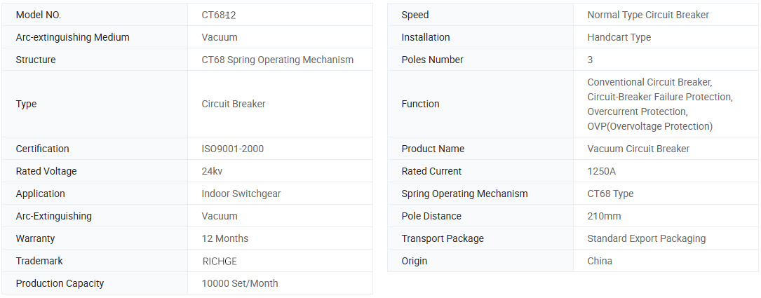 सीटी 68-12 व्हॅक्यूम सर्किट ब्रेकरची वैशिष्ट्ये
