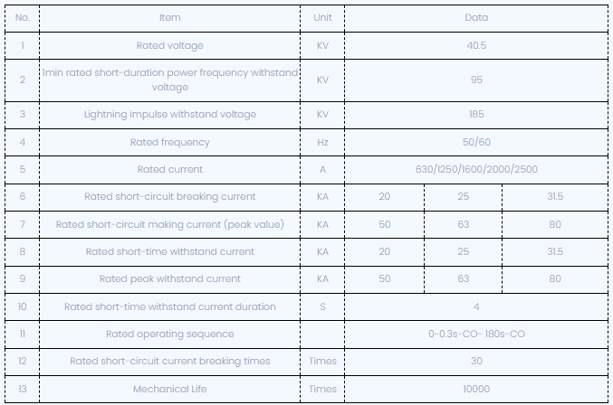 व्होल्टेज रेटिंग:40.5 केव्ही (95 केव्ही लाइटनिंग प्रेरणा सहन करा).