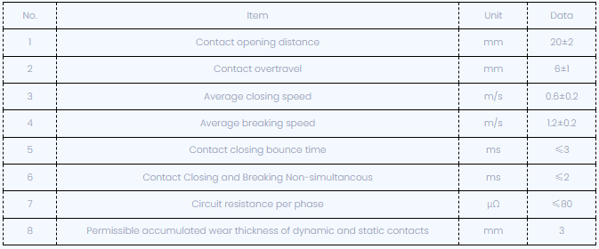 सर्किट ब्रेकर समायोजित केल्यानंतर, यांत्रिक वैशिष्ट्यपूर्ण पॅरामीटर्स खाली दर्शविले आहेत: