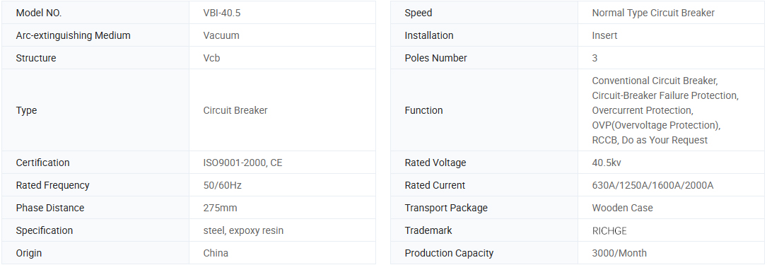 व्हीबीआय इनडोअर हाय-व्होल्टेज व्हॅकम सर्किट ब्रेकर हे तीन-फेज एसी 50 हर्ट्ज आणि 40.5 केव्हीचे रेट केलेले व्होल्टेज असलेले एक इनडोअर डिव्हाइस आहे. याचा उपयोग औद्योगिक आणि खाण उद्योग, उर्जा प्रकल्प आणि सबस्टेशनमधील विद्युत उपकरणांच्या नियंत्रण आणि संरक्षणासाठी केला जाऊ शकतो, विशेषत: वारंवार ऑपरेशन्स असलेल्या ठिकाणांसाठी. स्विच कॅबिनेटमधील सर्किट ब्रेकरचा इन्स्टॉलेशन फॉर्म एकतर एक निश्चित प्रकार किंवा ट्रॉलीवर स्थापित केलेला एक पैसे काढण्यायोग्य प्रकार असू शकतो. व्हीबीआय इनडोअर हाय-व्होल्टेज व्हॅक्यूम सर्किट ब्रेकरमध्ये विश्वसनीय कामगिरी आहे आणि ती स्थापित करणे सोपे आहे. उच्च-व्होल्टेज ट्रान्समिशन आणि वितरण प्रणालींच्या नियंत्रण आणि संरक्षणासाठी ही सर्वोत्तम निवड आहे.