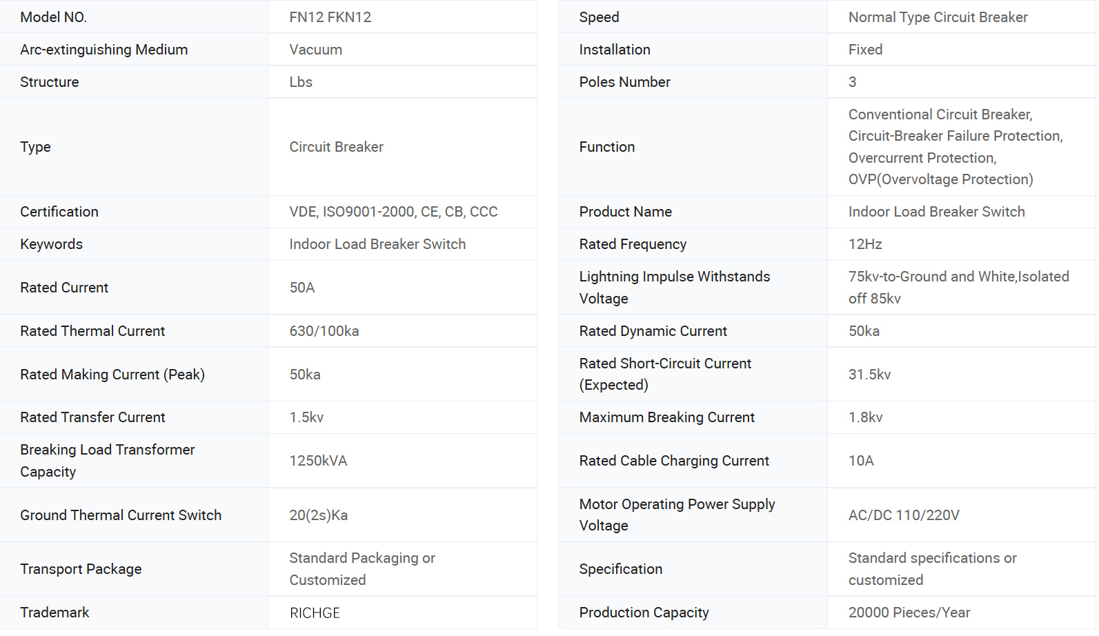 FKN12-12D/630-20 इनडोअर AC हाय-व्होल्टेज लोड स्विच हे 12KV च्या रेट केलेले व्होल्टेज आणि 50HZ ची रेटेड वारंवारता असलेले तीन-फेज उच्च-व्होल्टेज स्विचगियर आहे. याचा वापर लोड करंट, क्लोज्ड-लूप करंट, नो-लोड ट्रान्सफॉर्मर आणि केबल चार्जिंग करंट, ऑफ कॉम्बाइड शॉर्ट सर्किट करंट स्विच करण्यासाठी केला जातो. ग्राउंडिंग स्विचसह सुसज्ज लोड स्विच शॉर्ट-सर्किट करंटचा सामना करू शकतो.
