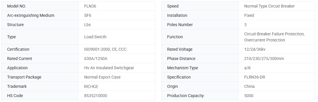 त्याचे कार्यप्रदर्शन निर्देशक आयईसी 420, 694, 129 आणि राष्ट्रीय मानक जीबी 3804-2004 चे पूर्णपणे पालन करतात “3.6 केव्ही -40.5 केव्ही हाय-व्होल्टेज एसी लोड स्विच”, जीबी १ 85 8585-२००4 “हाय-व्होल्टेज एसी डिस्कनेक्टर आणि अर्थिंग स्विच” रिंग नेटवर्क कॅबिनेटचे घटक.