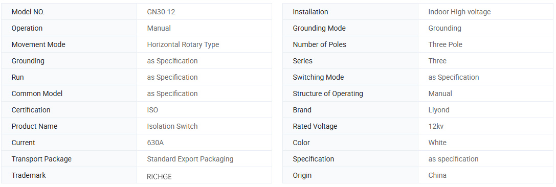 GN30-12 पृथक्करण स्विच वैशिष्ट्ये