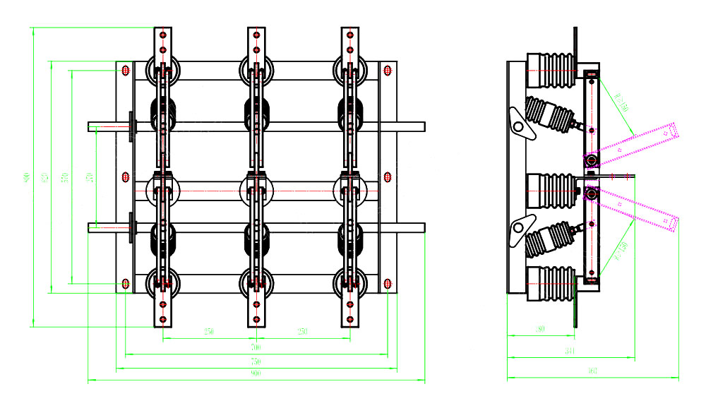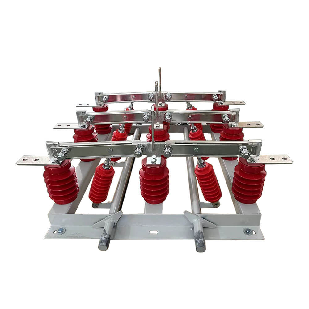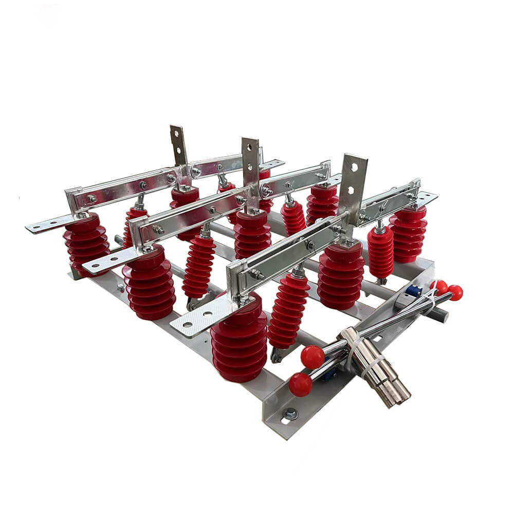 प्रत्येक टप्प्यासाठी दोन स्तंभ इन्सुलेटरद्वारे जीएन 19-12/400, 630, 1000, 1250 प्रकार डिस्कनेक्ट स्विचचा प्रवाहकीय भाग बेसवर निश्चित केला जातो. . संपर्क चाकूचा प्रत्येक टप्पा टाय इन्सुलेटर, टाय इन्सुलेटरच्या मध्यभागी जोडलेला आहे आणि स्पिंडल कनेक्ट केलेल्या स्पिंडलच्या पायथ्याशी स्थापित केला आहे. स्पिंडल हँडलद्वारे कनेक्टिंग रॉड (वापरकर्ता-प्रदान केलेले) आणि सीएस 6-1 प्रकारात जोडलेले आहे. कनेक्टिंग कॉन्टॅक्ट चाकू दोन स्लॉटेड कॉपर प्लेट्सचा बनलेला आहे, ज्यामुळे तळाशी तापमान कमी करण्यासाठी संपर्क चाकूच्या उष्णता अपव्यय क्षेत्रामध्ये केवळ वाढ होते, परंतु संपर्क चाकूची यांत्रिक शक्ती देखील सुधारते, जेणेकरून स्विचची डायनॅमिक स्थिरता सुधारली जाईल. संपर्क चाकूचा एक टोक कॉन्टॅक्ट ब्लॉकवर (किंवा प्रवाहकीय रॉडवर) बोल्ट (शॉची कार) द्वारे आरोहित केला जातो. जीएन १ -12 -१२/१०००, १२50० चुंबकीय लॉकिंग प्लेटच्या स्थापनेच्या संपर्कात, तसेच चुंबकीय लॉकिंग प्लेटचा हेतू असा आहे की जेव्हा मोठा शॉर्ट-सर्किट चालू असेल तेव्हा दोन खोबणी संपर्क चाकू वाढविण्यासाठी | आकर्षण. जीएन १ -12 -१२/, ००, 630 डिस्कनेक्ट स्विचची चालू माध्यमातून एक छोटी मर्यादा असते, म्हणून चुंबकीय लॉकिंग प्लेट जोडण्याची आवश्यकता नाही.