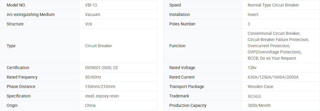 व्हीबीआय मालिका इनडोअर व्हॅक्यूम सर्किट ब्रेकर इंटेलिजेंट व्हॅक्यूम सर्किट ब्रेकर्सची एक नवीन पिढी आहे. उच्च-कार्यक्षमता व्हॅक्यूम इंटरप्रेटर आणि अप्पर आणि लोअर आउटगोइंग टर्मिनल्ससह त्याचे थेट घटक इपॉक्सी राळ पोस्ट टर्मिनल्समध्ये एन्केप्युलेटेड आहेत. हे डिझाइन व्हॅक्यूम इंटरप्टरच्या पृष्ठभागावर दूषित होण्यास प्रतिबंधित करते, त्याचे इन्सुलेशन गुणधर्म, यांत्रिक स्थिरता वाढवते आणि त्याचे कार्यकारी आयुष्य वाढवते.