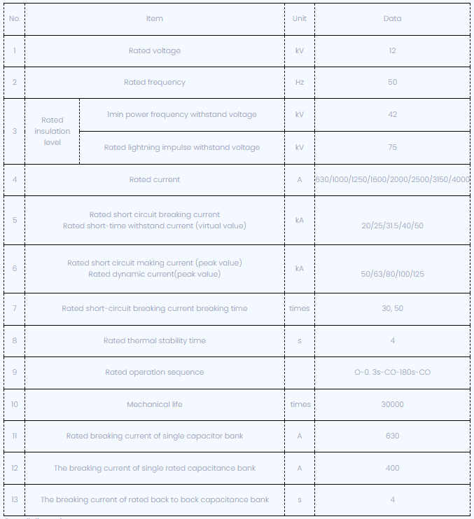 व्हीएसजी -12 1600 ए व्हीसीबी फिक्स्ड प्रकार सॉलिड पोलचे तांत्रिक मापदंड