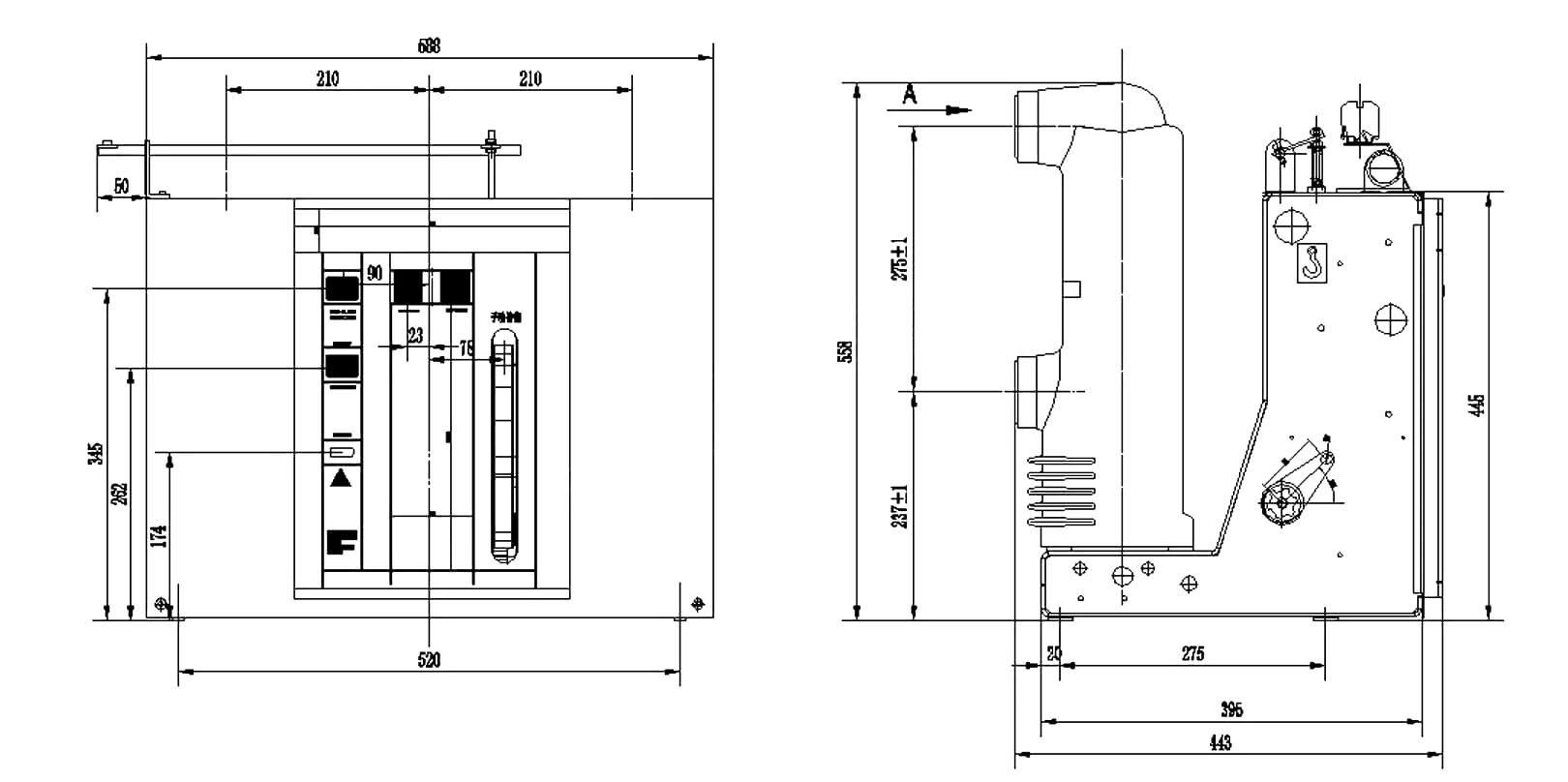 व्हीएसजी -12/1600 निश्चित प्रकार व्हीसीबीचे एकूण परिमाण