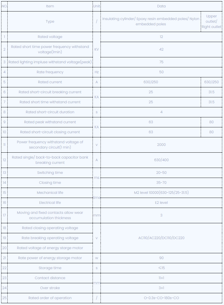 व्हीएसजी-सी/12 प्रकारची साइड इंस्टॉलेशन इनडोअर हाय व्होल्टेज व्हॅक्यूम सर्किट ब्रेकर स्प्रिंग टू स्टोरेज एनर्जी वापरली. ऑपरेटिंग यंत्रणा दोन मार्गांनी चालविली जाऊ शकते, मॅन्युअल आणि इलेक्ट्रोमोटिव्ह ऑपरेशनद्वारे, जीबी 1984-2003 उच्च व्होल्टेज एसी सर्किट ब्रेकर, जेबी 3855-1996 3.6-4.5 केव्ही इंडोर एसी उच्च व्होल्टेज एसी सर्किट ब्रेकर आणि आयईसी मानक 62271-100: 20016271-1-1-1-1-1-1-1-1-1-1-1-1-1-1-1-1-1-100.