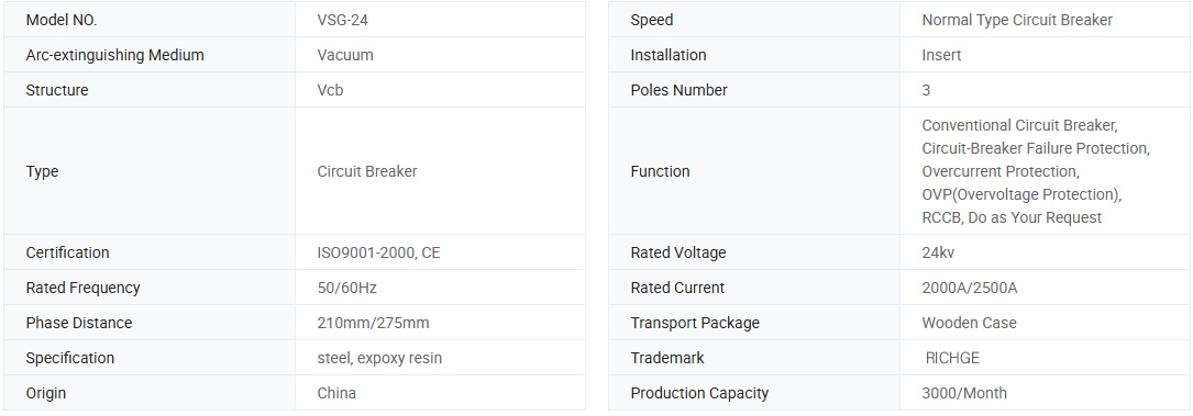 एम्बेडेड पोलसह इनडोअर हाय व्होल्टेज व्हॅक्यूम सर्किट ब्रेकरची व्हीएसजी -24 मालिका तीन फेज एसी 50 हर्ट्झ इनडोअर पॉवर वितरण उपकरणे 24 केव्हीच्या रेट केलेल्या व्होल्टेजसह आहे. हे उद्योग आणि मिंग एंटरप्राइझ, पॉवर प्लांट्स आणि सबस्टेशन या क्षेत्रातील विद्युत उपकरणांचे संरक्षण आणि नियंत्रित करण्यासाठी वापरले जाते.